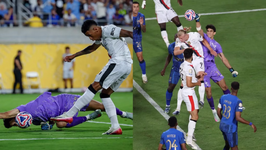 وعرفت المواجهة ندية كبيرة بين الطرفين، حيث تبادلا السيطرة وتسجيل الأهداف في واحدة من أقوى المباريات بتاريخ البطولة. ورغم البداية القوية لمانشستر سيتي، الذي افتتح التسجيل مبكرًا عقب ارتباك دفاعي، إلا أن الهدف أثار الكثير من الجدل بسبب لمسة يد واضحة لم تتم مراجعتها عبر تقنية الفيديو، ما أثار احتجاجات لاعبي الهلال.