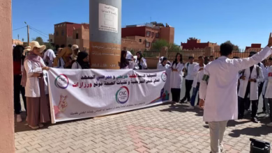 طلبة وخريجو معهد التمريض بورزازات يحتجون للمطالبة بالتعويض والتوظيف والحماية القانونية